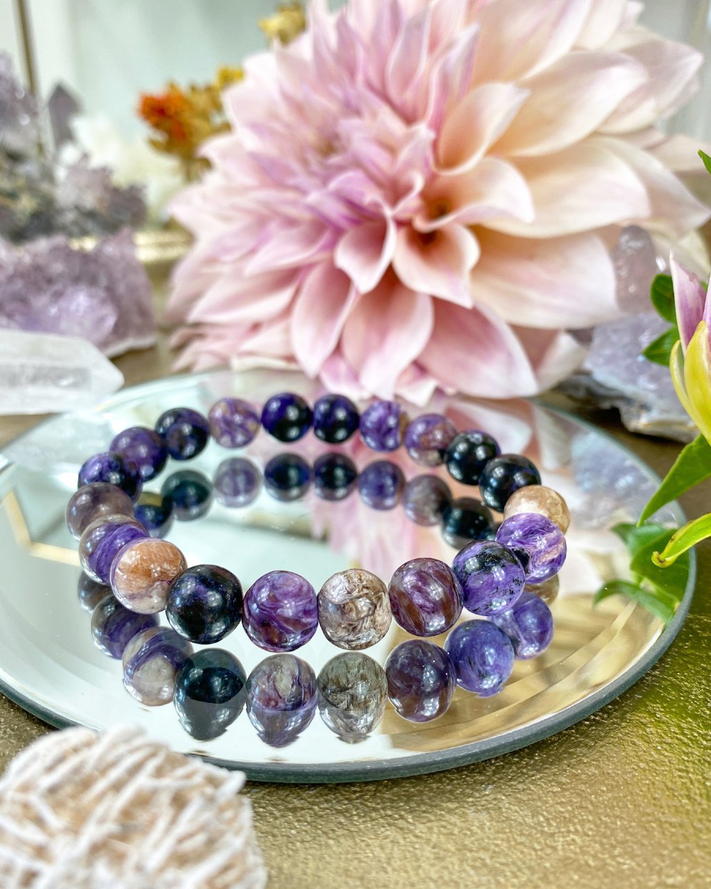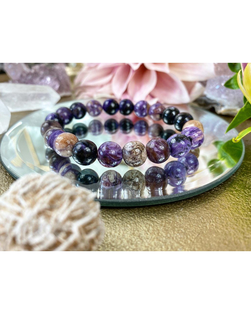 - náramek je vyroben z minerálních kamenů : charoit AAA kvalita