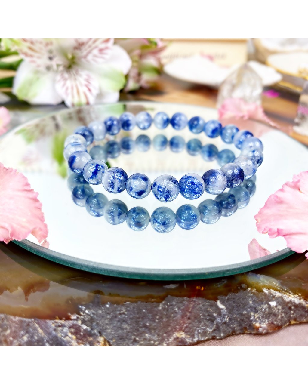 - náramek je vyroben z minerálních kamenů : dumortierit AAA kvalita