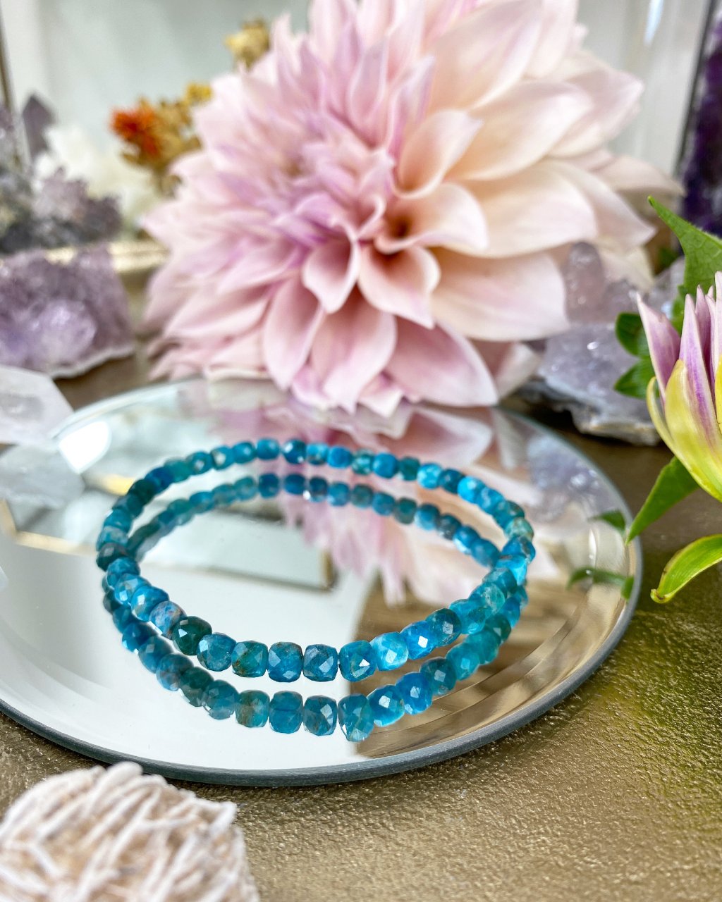 Luxusní náramek z minerálu fazetovaný modrý apatit 4mm AAA kvalita