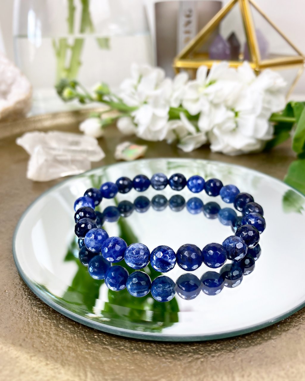 Luxusní náramek z minerálu modrý sodalit fazetovaný AAA kvalita