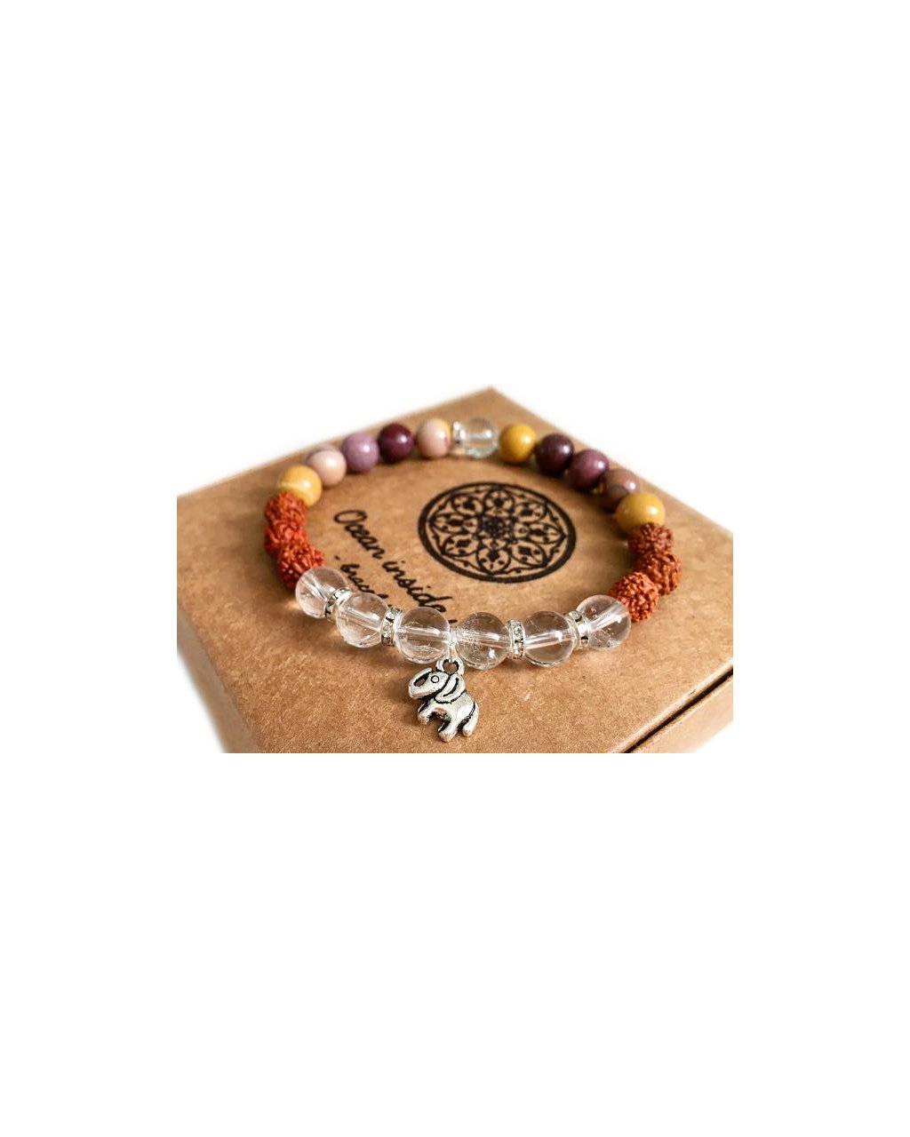 Náramek z minerálních kamenů rudraksha, křišťál a jaspis mookaite