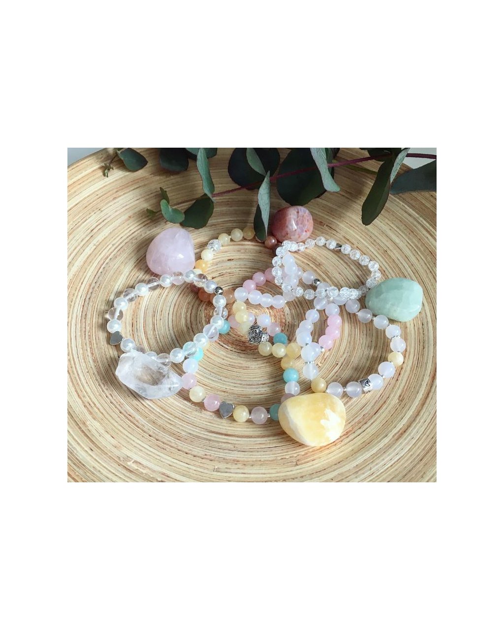 - náramek je vyroben z minerálních kamenů : růženín, jaspis žlutý a křišťál