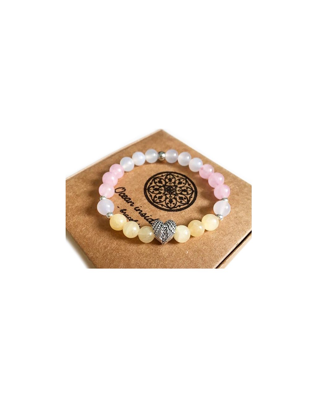 Náramek z minerálů andělské srdíčko s růženínem a žlutým jaspisem