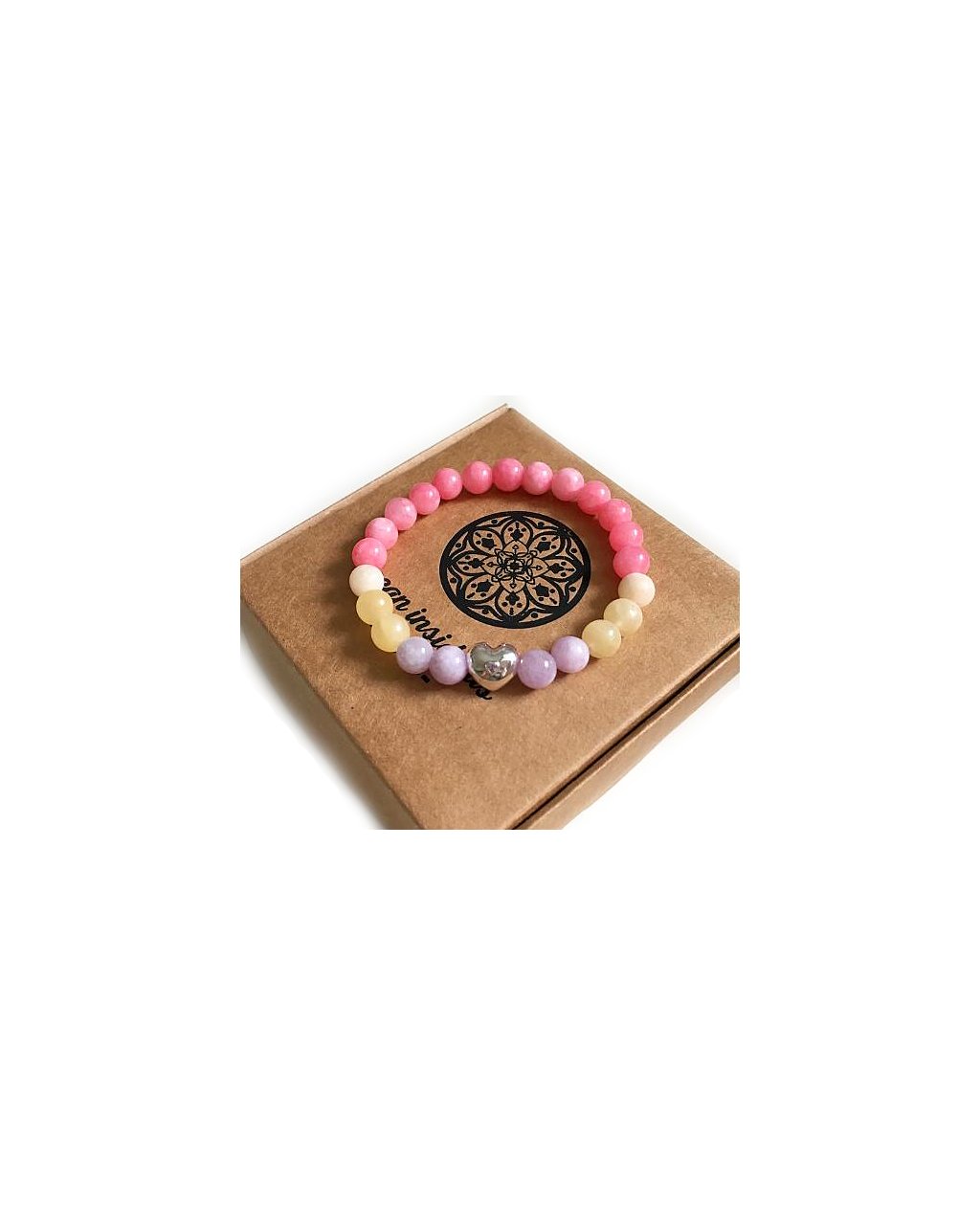 Náramek z minerálů jadeit růžový, angelit a luxusní srdíčko