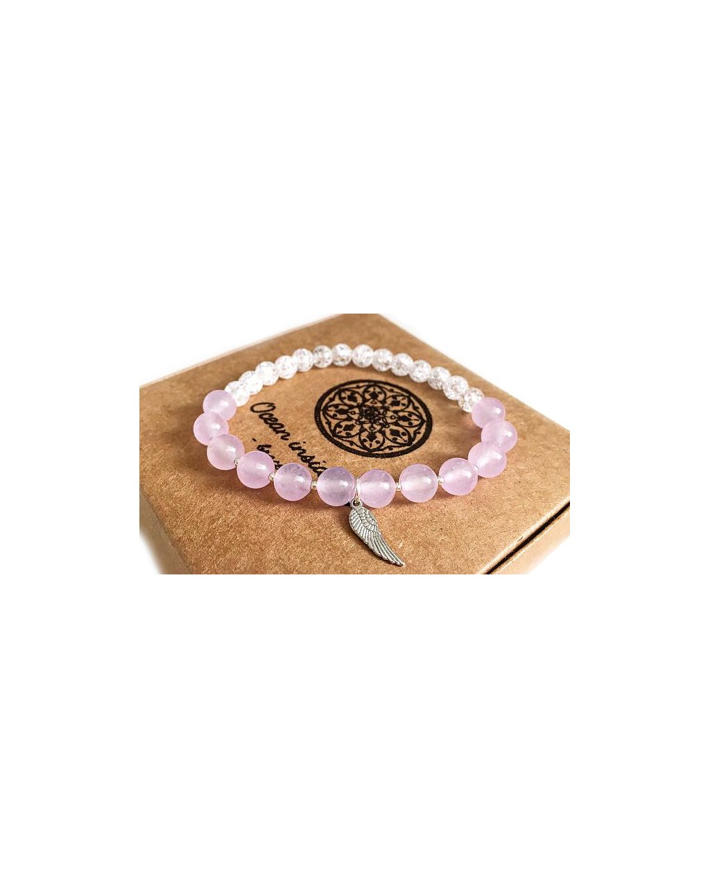 Náramek z minerálů Jemné pírko s praskaným křišťálem a růžovým nefritem