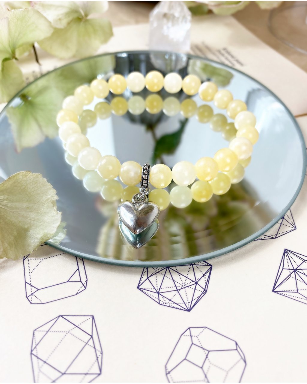 - náramek je vyroben z minerálních kamenů : kalcit žlutý a mléčný křemen