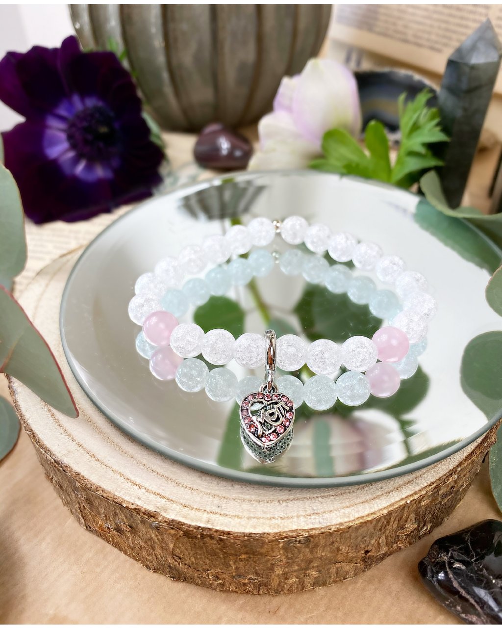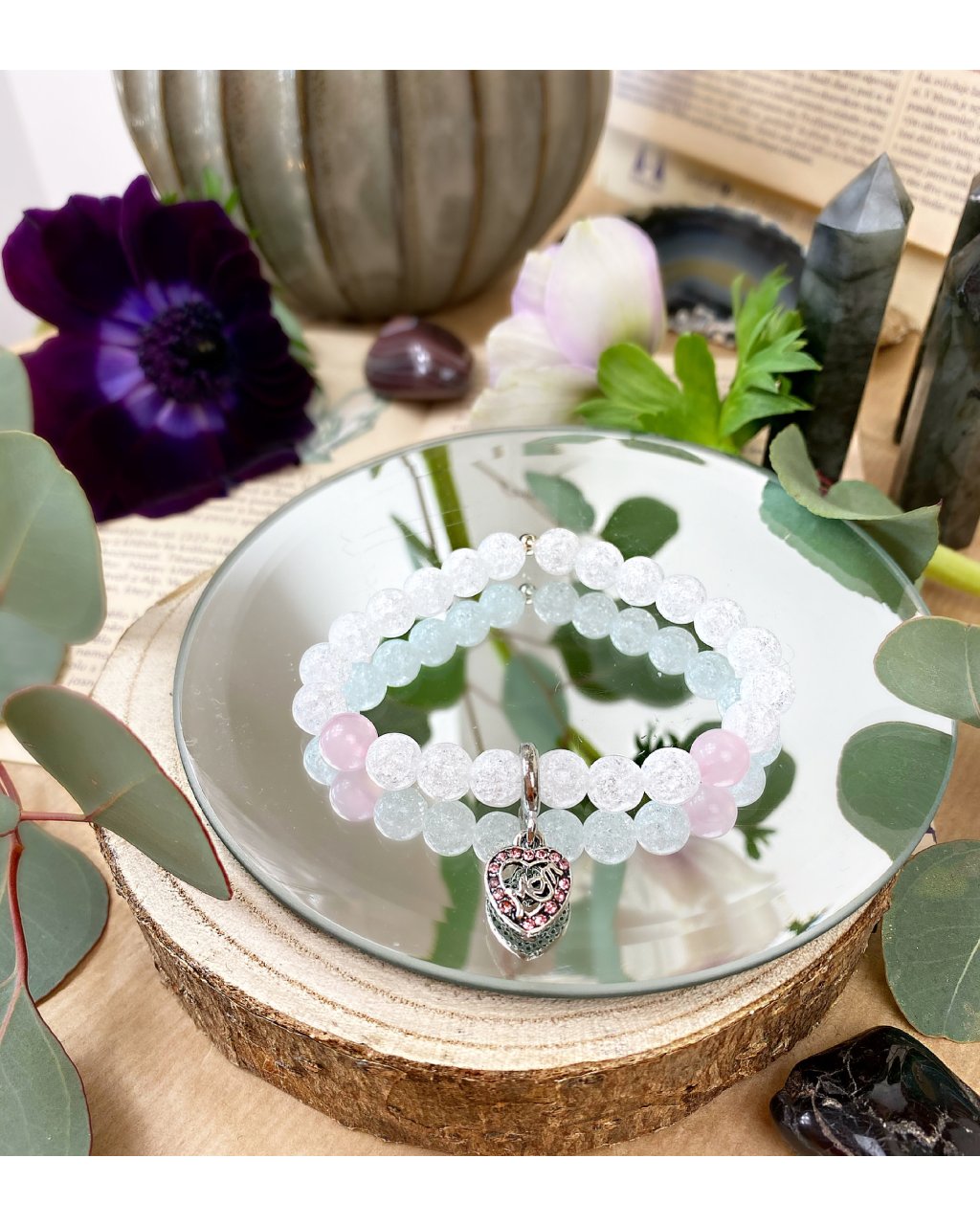 Náramek z minerálů pro maminky s praskaným křšťálem a růženínem