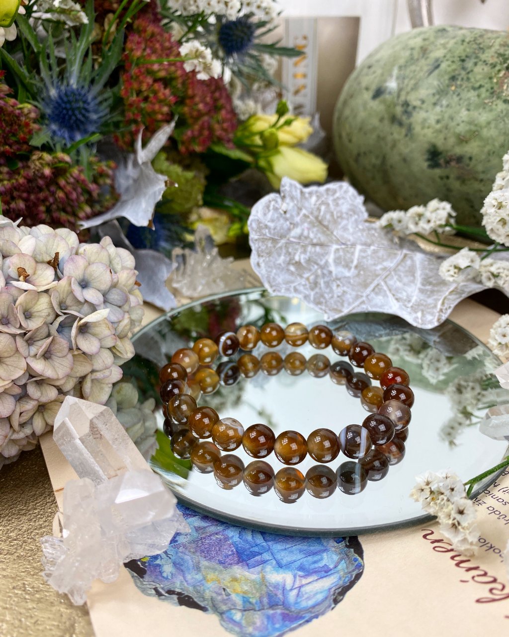 - náramek je vyroben z minerálních kamenů : hnědý achát