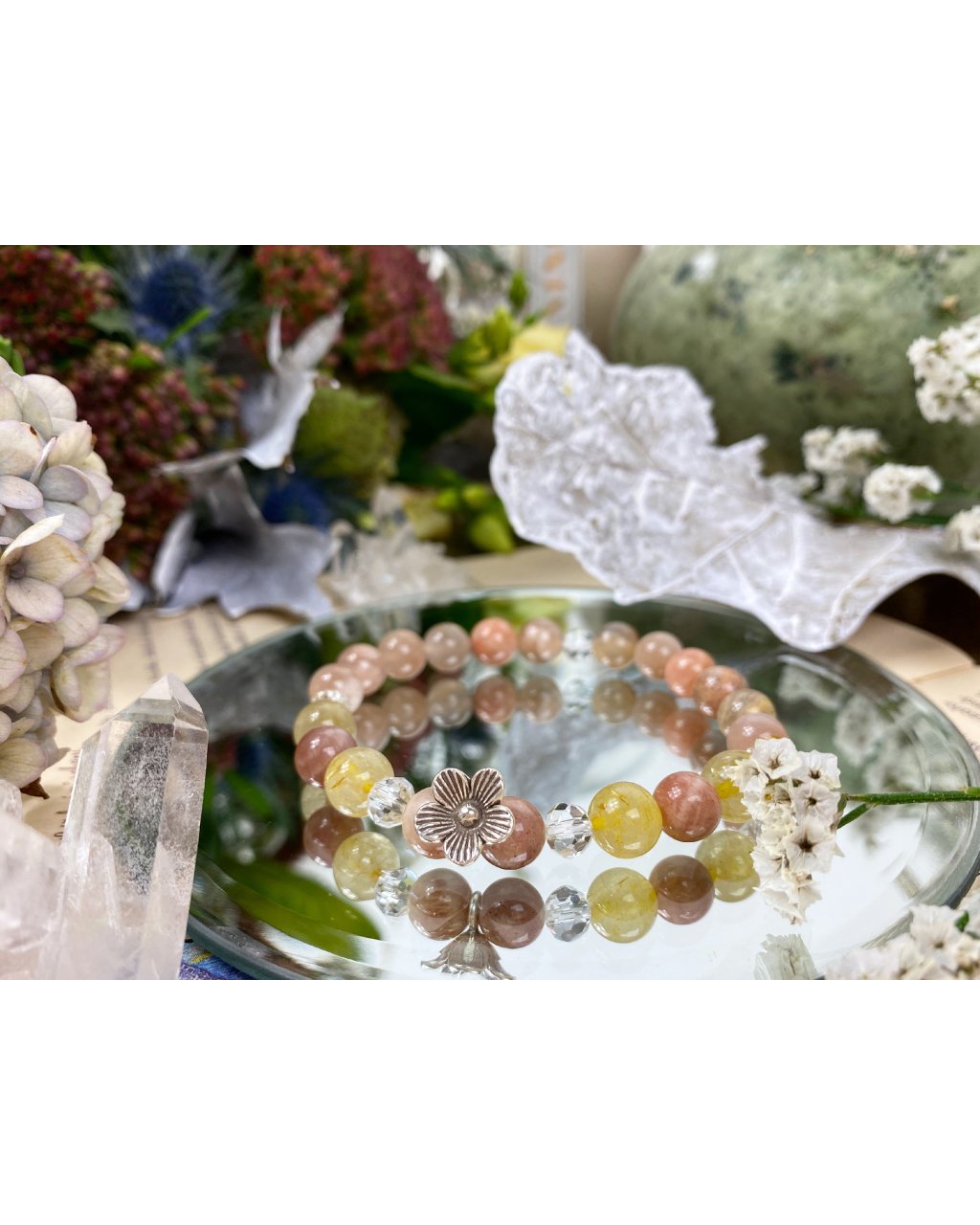 Náramek z minerálů sluneční kámen, citrín a kytička