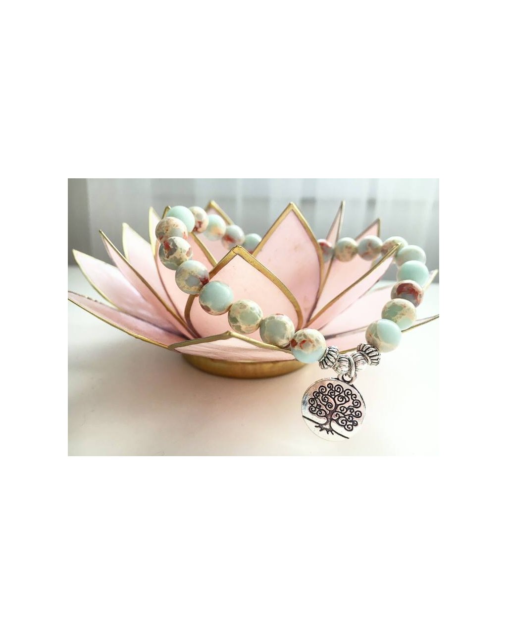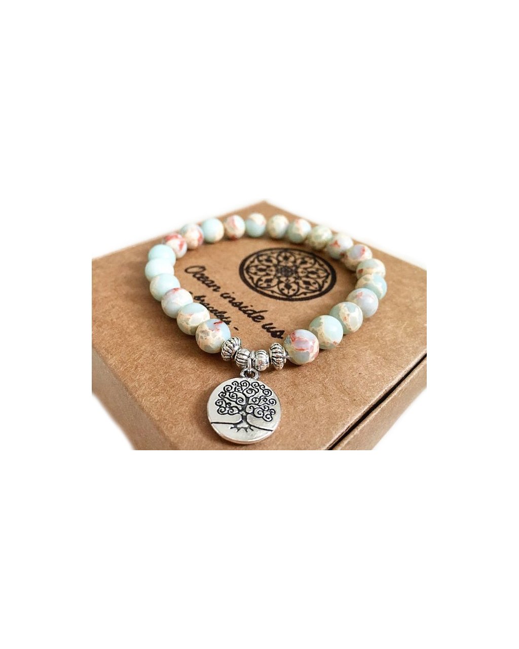 Náramek je vyrobený z jaspisu, který byl vytěžen z mořského sedimentu. Je opravdu jedinečný a originální, jelikož dva stejné kameny nikdy neleze vytěžit.