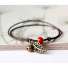 Indiánský jemný náramek s peříčkem a červeným korálkem.