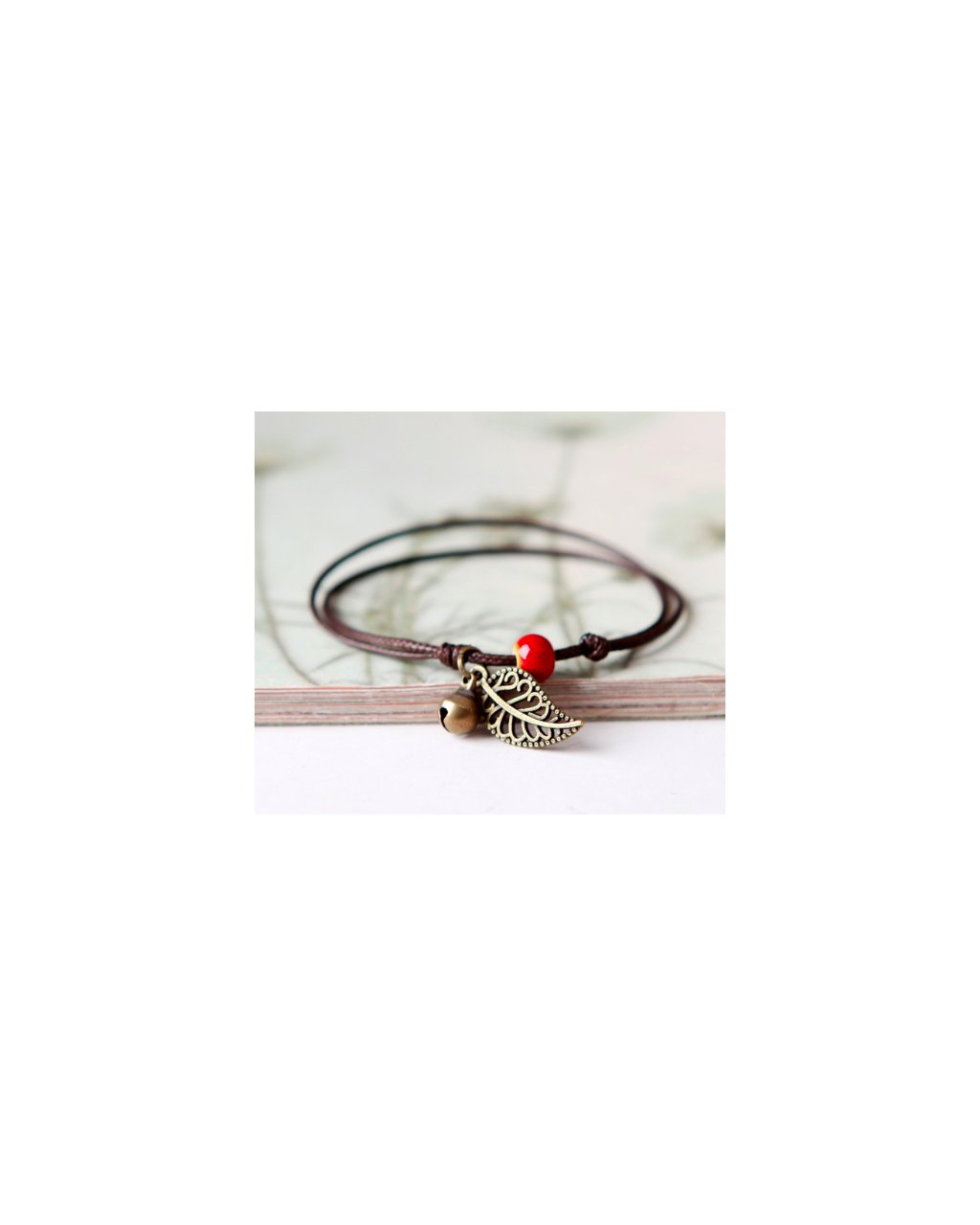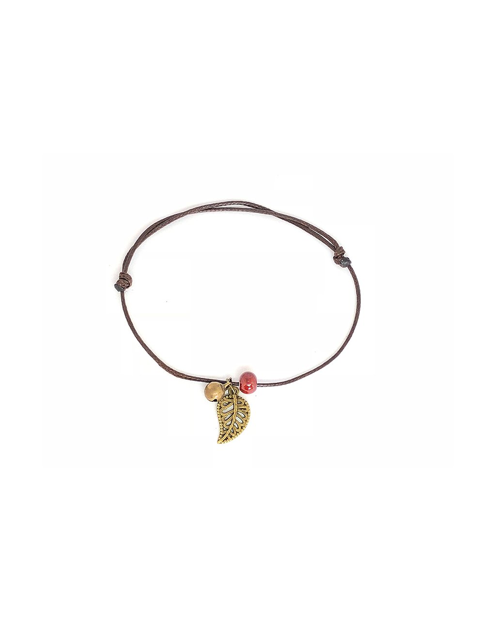 Indiánský jemný náramek s peříčkem a červeným korálkem.
