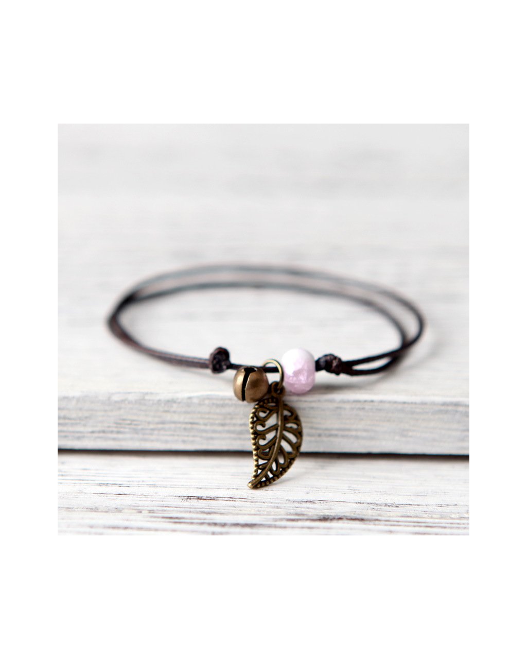 Indiánský jemný náramek s peříčkem a růžovým korálkem.