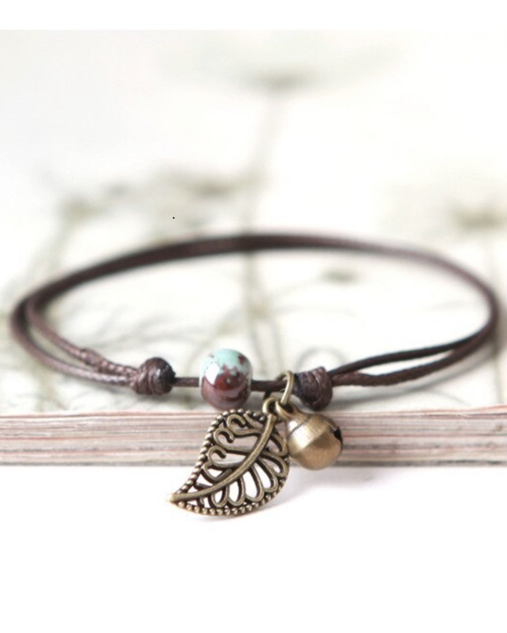 Indiánský jemný náramek s peříčkem a modro-hnědým korálkem.