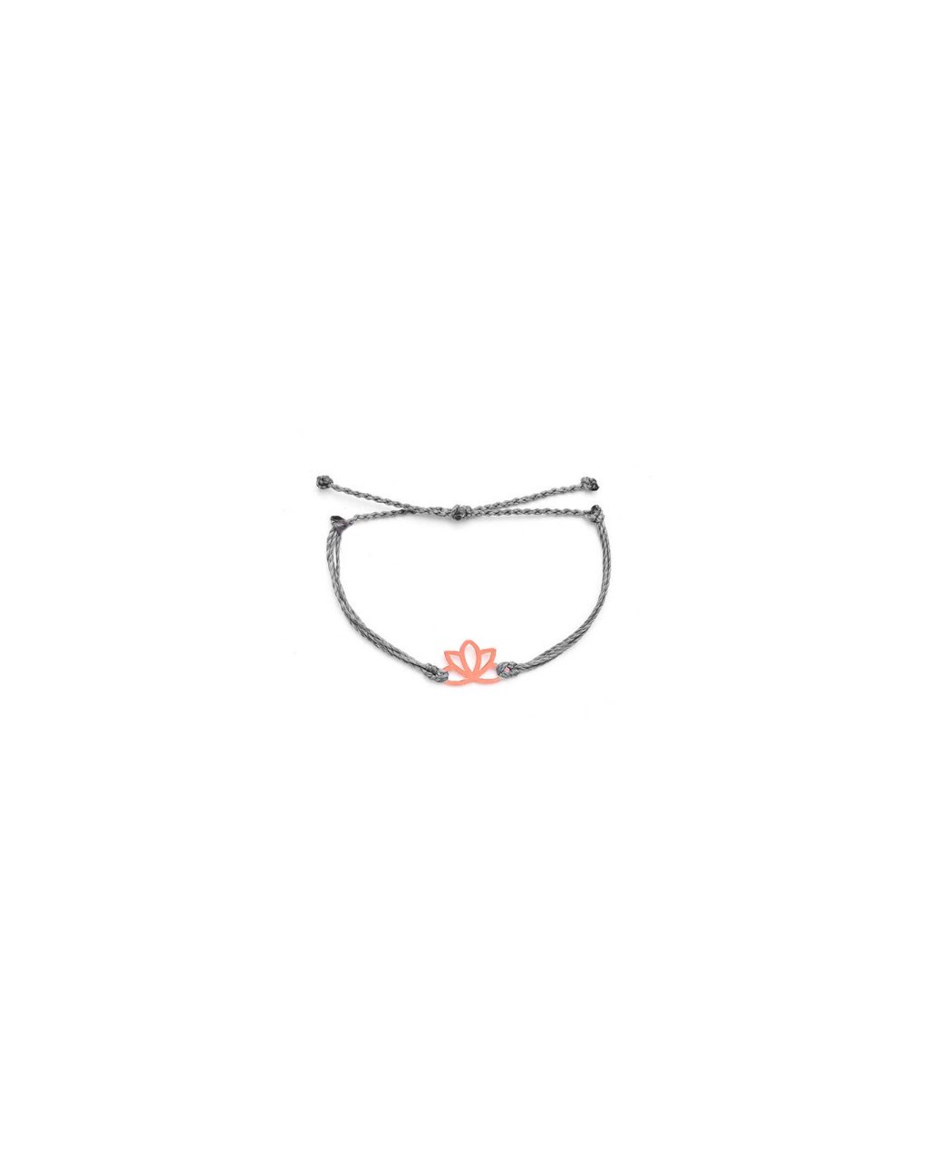 Minimalistický jemný provázkový náramek v šedé barvě s květem lotosu. Tento jemný náramek v boho stylu na ruce skvěle doplňuje jakékoliv minerální náramky!