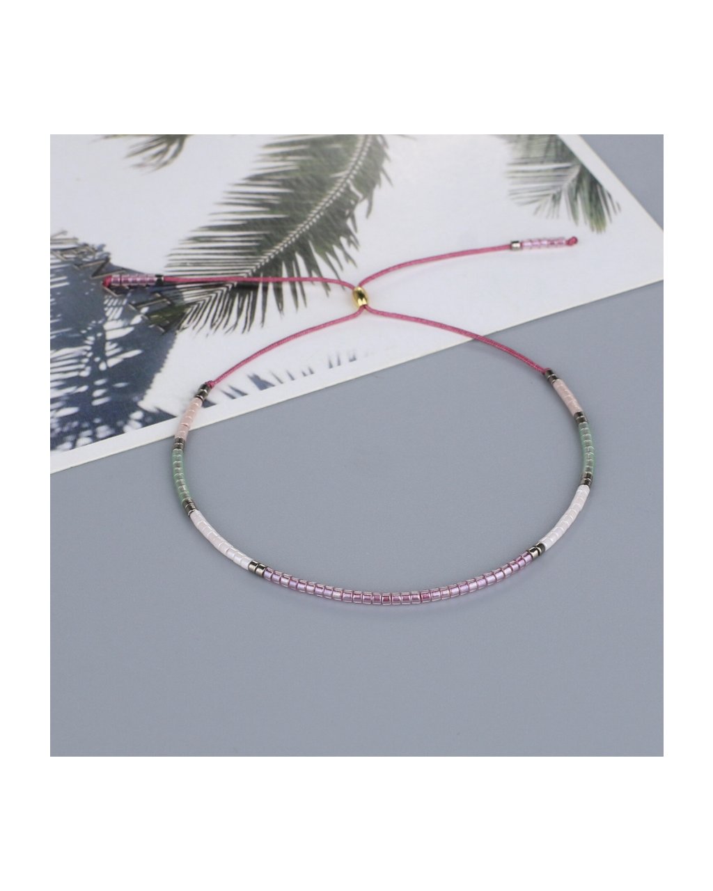 Minimalistický jemný provázkový náramek ze semínkových korálků v bordové barvě.