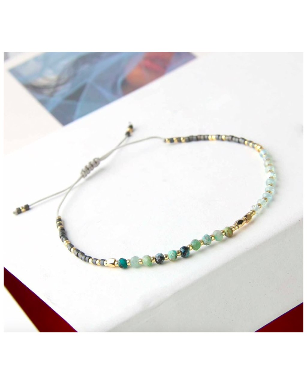 Tento jemný náramek v boho stylu na ruce skvěle doplňuje jakékoliv minerální náramky!