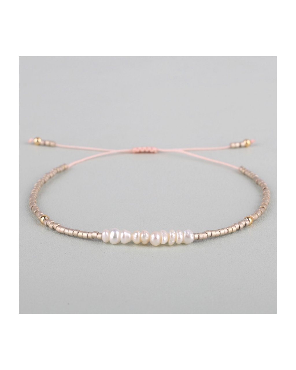 Minimalistický jemný provázkový náramek ze semínkových korálků ve zlatavé barvě s perlami.