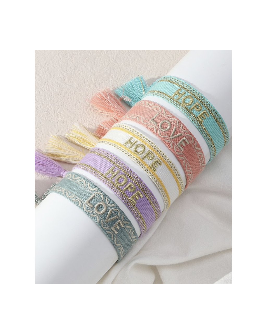 Tkaný náramek Love růžový se srdíčky