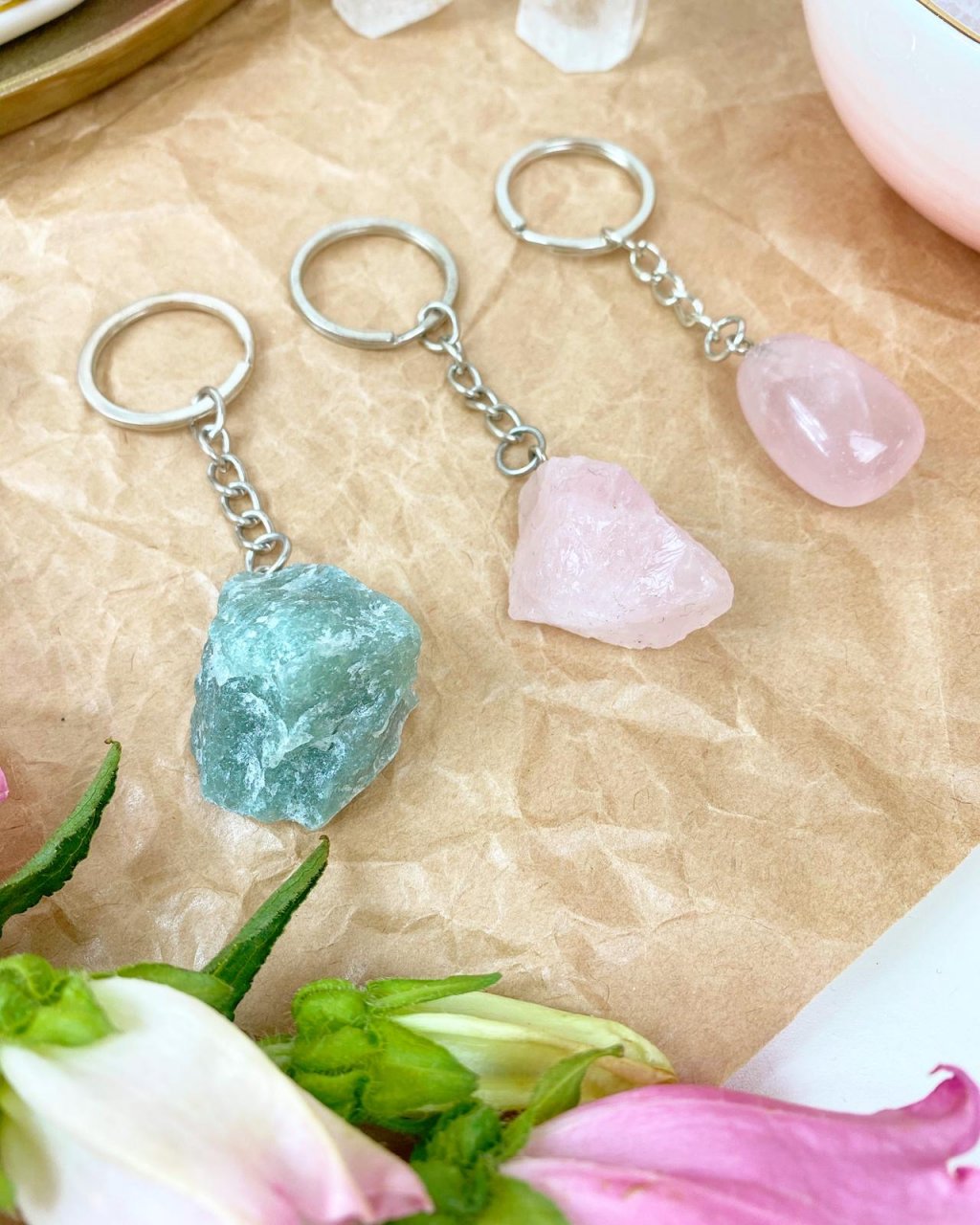 Přívěšek na klíče z minerálu růženín surový