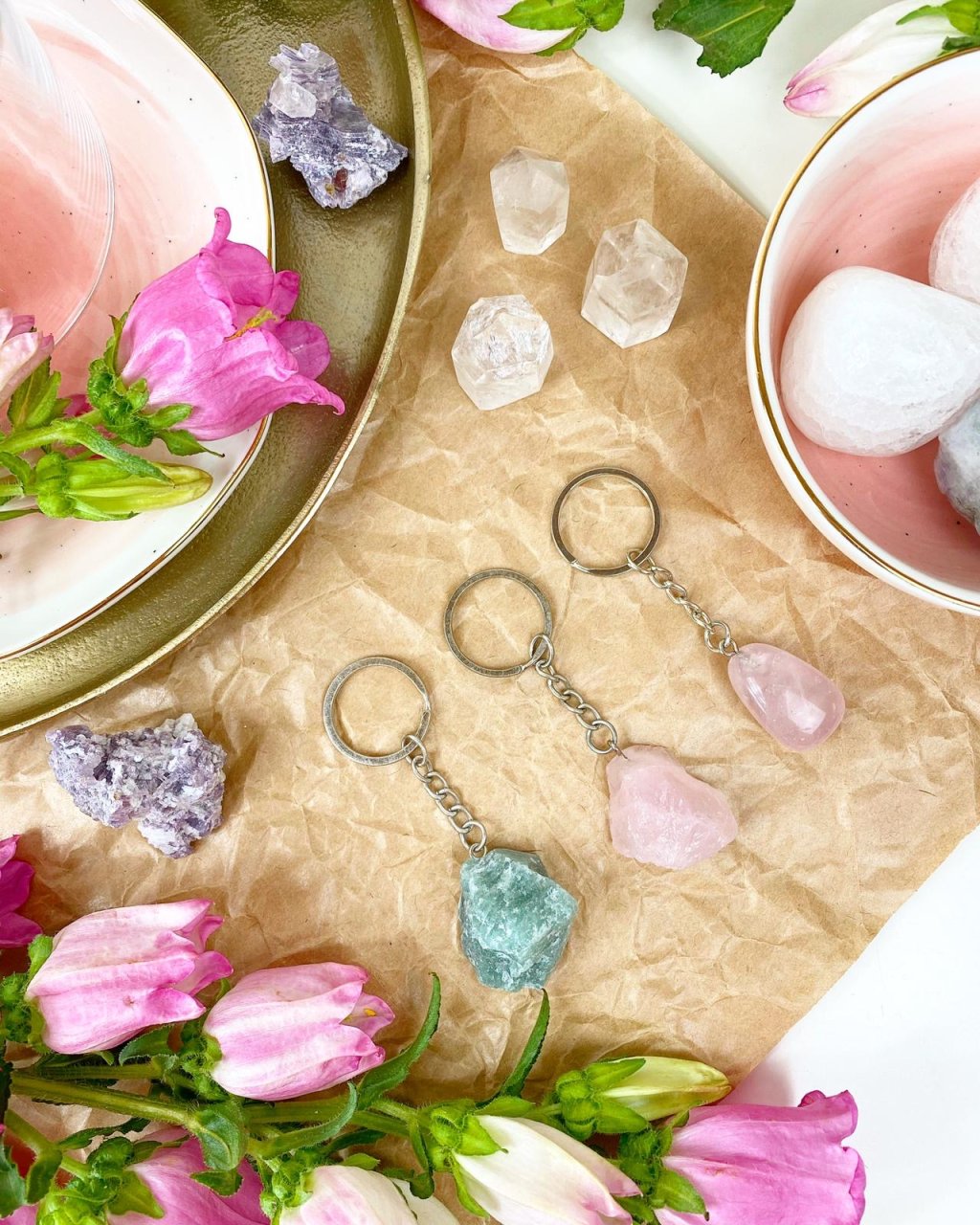 Přívěšek na klíče z minerálu růženín surový