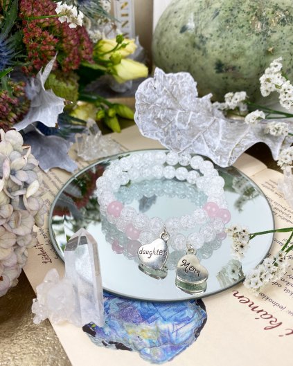 Náramky přátelství z minerálů pukaný křišťál, angelit a jemné přívěšky