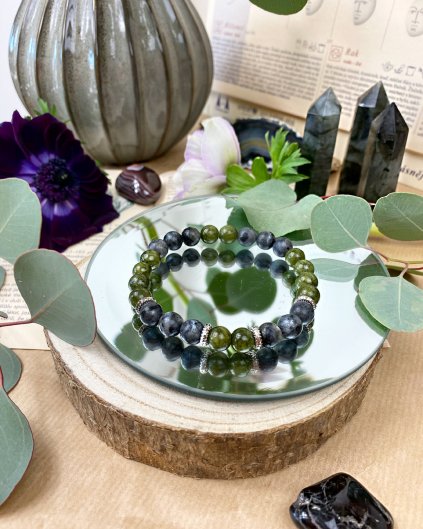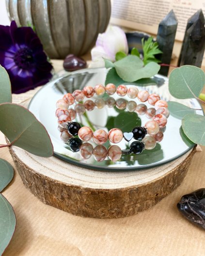 Dva náramky z minerálů vzácný měsíční kámen, křemen a jemný květ