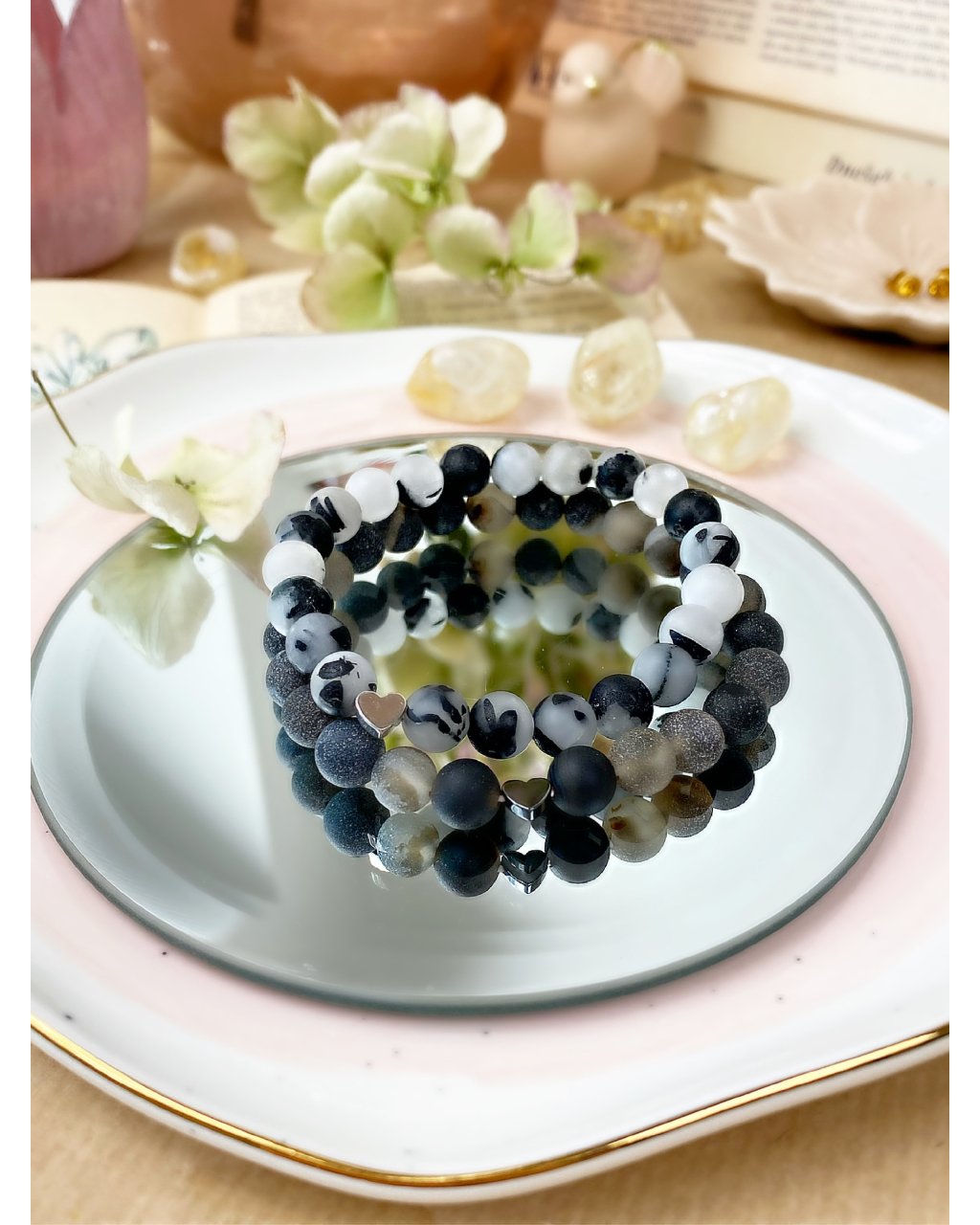 - náramek je vyroben z minerálních kamenů : achát a strukturovaný křemen