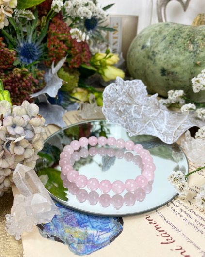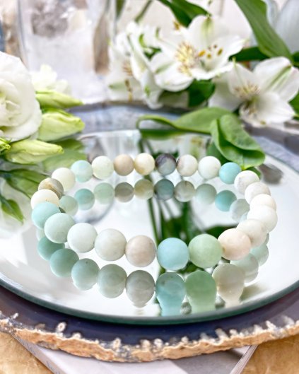 Dva náramky z minerálů vzácný měsíční kámen, křemen a jemný květ
