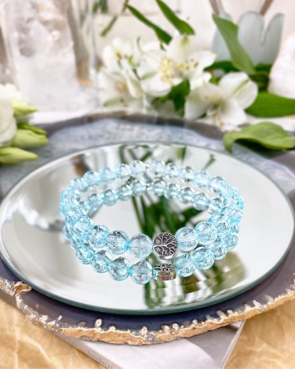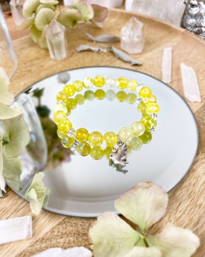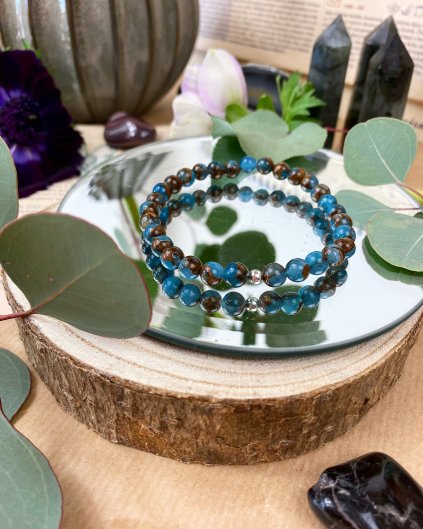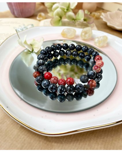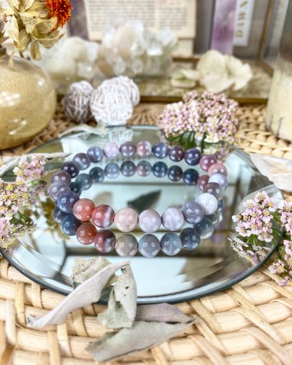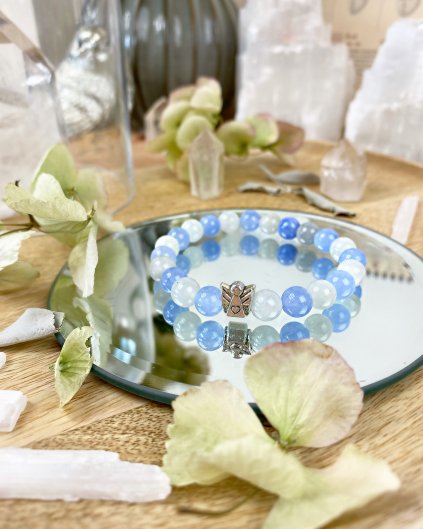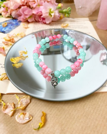 Dva náramky z minerálů vzácný měsíční kámen, křemen a jemný květ