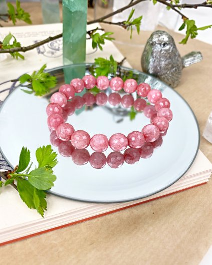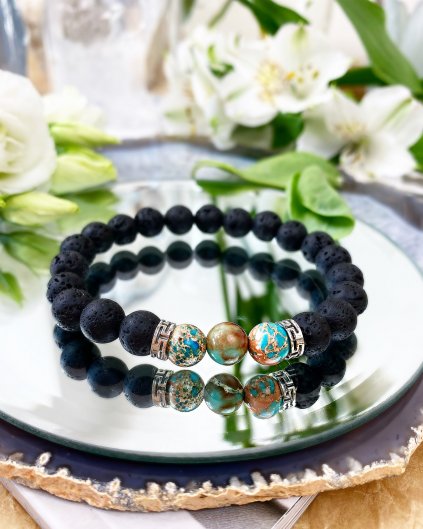 Luxusní náramek z polodrahokamu jaspis růžový zebrovaný a květ lotosu